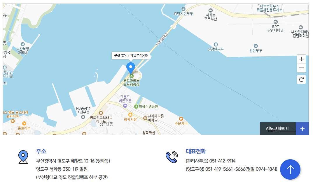영도 마리노 오토 캠핑장은 부산광역시 영도구 동삼동에 위치하고 있으며, 부산의 상징인 영도대교에서 차로 약 15분 거리에 있습니다. 도심과 가깝지만 바다와 접해 있어 자연 속에서 휴식을 취할 수 있는 최적의 장소이다.